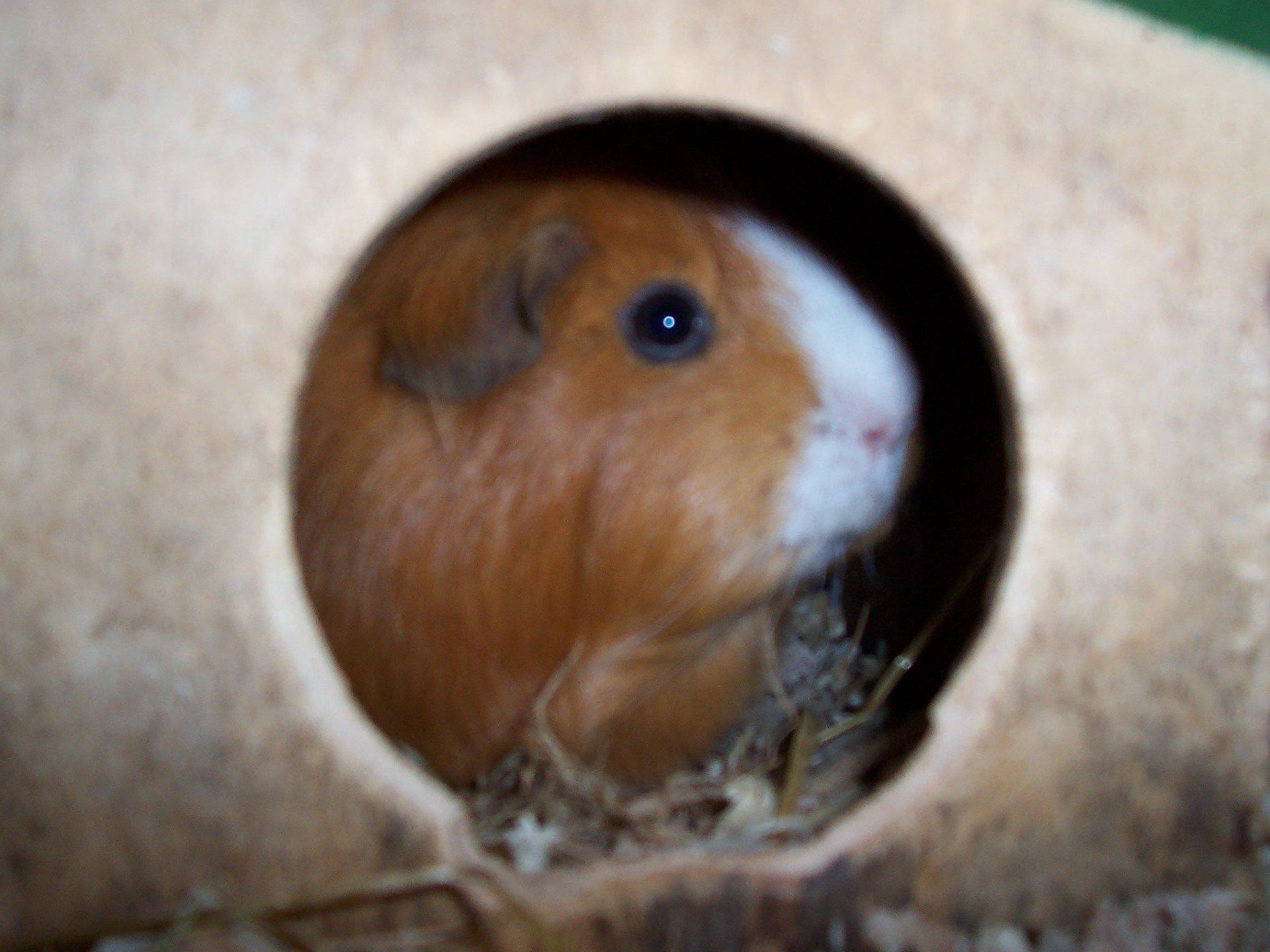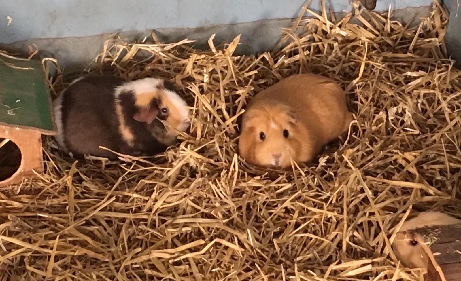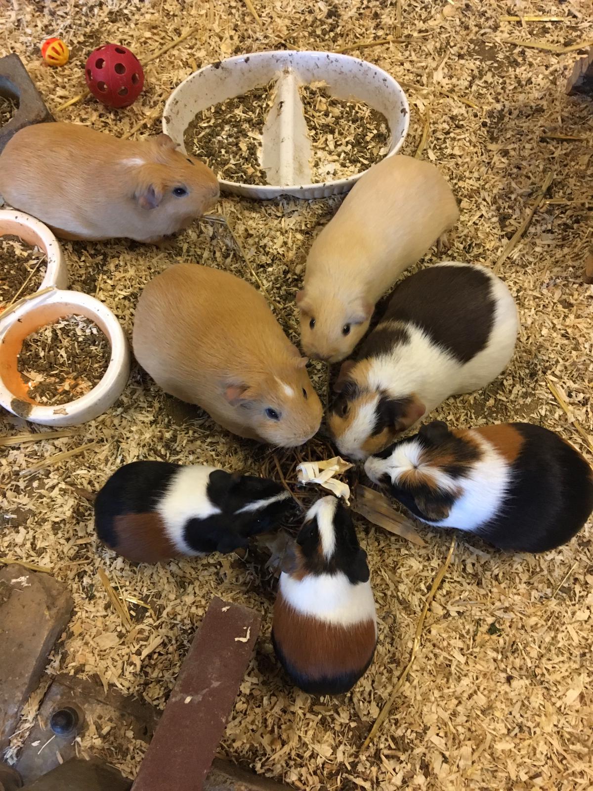 De cavia's wonen bij ons in een groep. Ze leven met z'n allen in een geitenstal, waar ze heerlijk de ruimte hebben. Daarnaast hebben wij cavia's die bij de konijnen in het Hilton Hotel wonen.