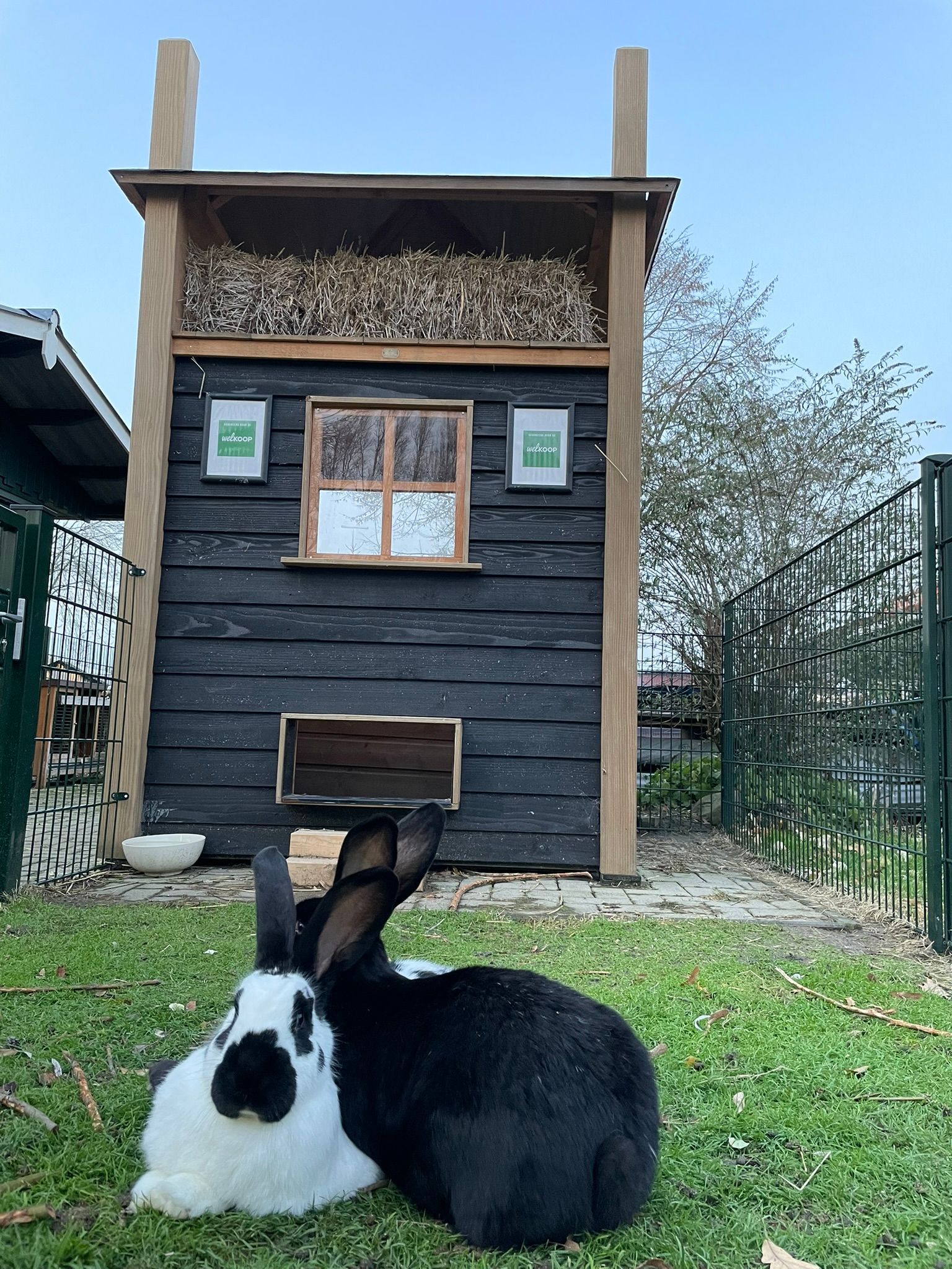 Er wonen meerdere dwergkonijnen op de kinderboerderij in het Hilton Hotel, onderin de hooizolder. Om onze konijnen meer ruimte te geven hebben we in 2016 steeds van 2 hokken 1 hok gemaakt.